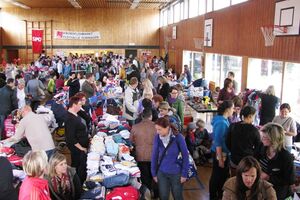 Eine Angebotspalette, wie sie reichhaltiger nicht sein könnte, erlebten die Besucher des Kinderflohmarkts des Dunninger SPD-Ortsvereins am vergangenen Samstag. Alle 60 Verkaufstische in der Turnhalle waren voll belegt mit Kinderartikeln: Von Kleinkinderkleidung über Spielzeug bis hin zu Büchern, Computerspielen und Kinderfahrzeugen aller Art. Auch vor der Halle hatten vor allem Kinder mit ihren Teppichen den Vorraum in einen farbenprächtigen Basar verwandelt.